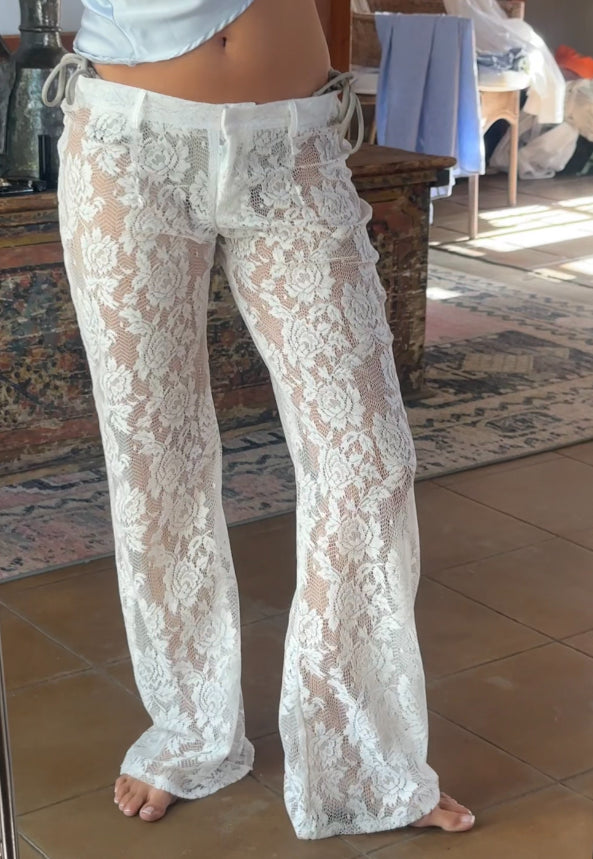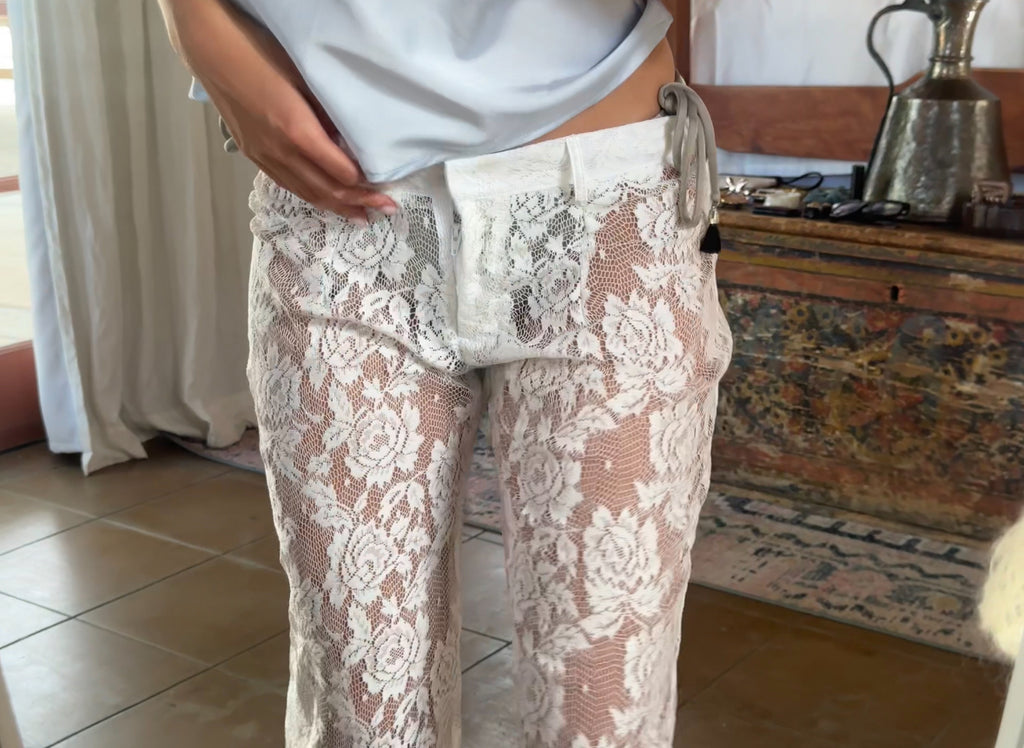 Our handpicked Vintage lace in our signature pants design you guys love. Our pinstripe pant but lace & sheer.. vacation ready